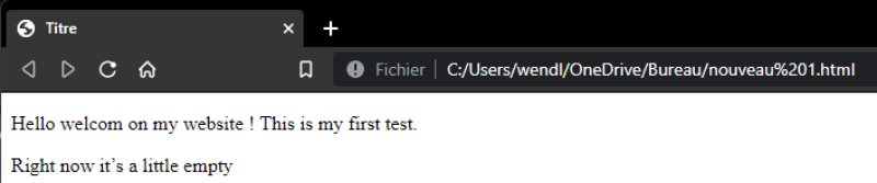 Lorsque vous cliquerez sur votre fichier HTML pour l'ouvrir dans le navigateur, ce dernier aura l'instruction d'appeler le fichier CSS associé pour afficher les propriétés de style de la page web.