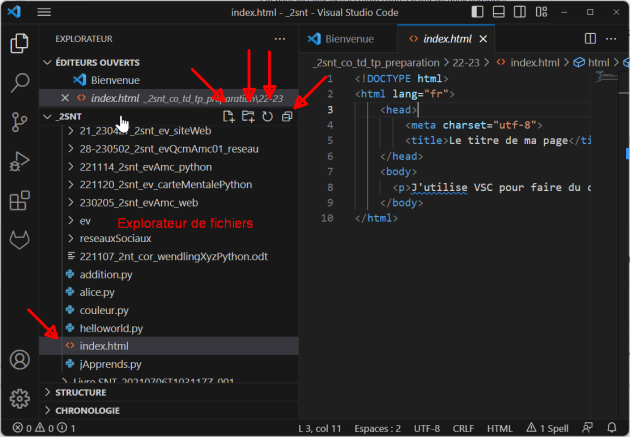 Dans la partie explorateur on peut avec les icones successives